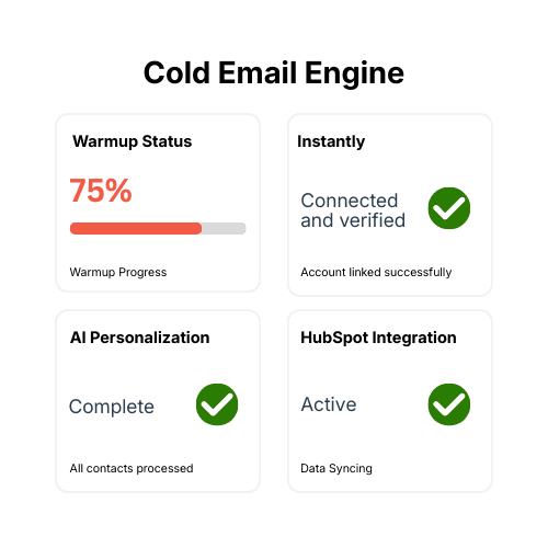 Most teams either send cold emails manually and run out of time, or they automate and lose the personalization that actually gets replies. We build the system that does both - AI-driven personalization at scale, integrated into your CRM, warmed domains, and optimized sequences. Four weeks. Then it runs.